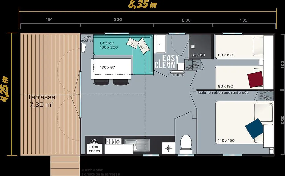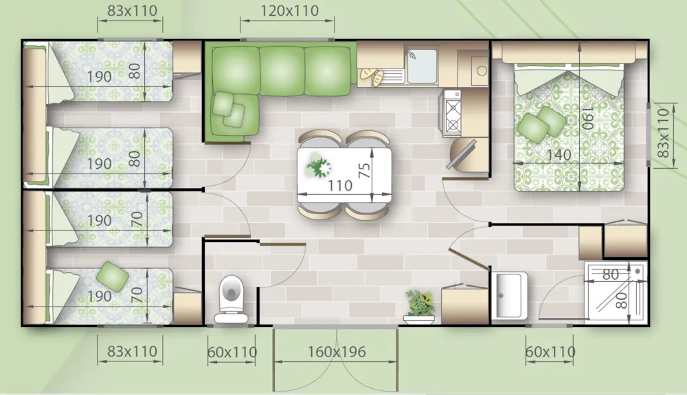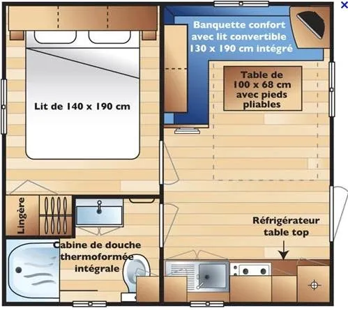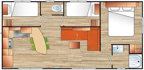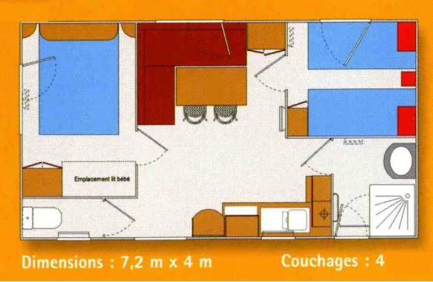 3 adultes maximum + 1 bébé pour ce type de mobil-home