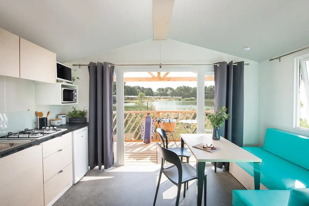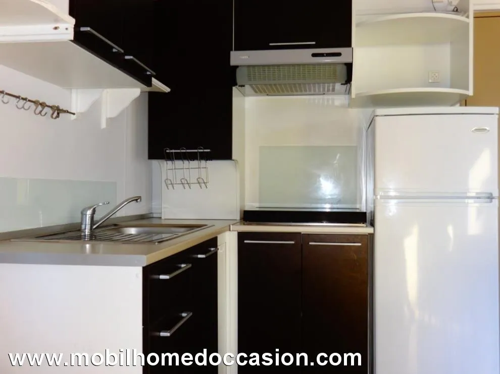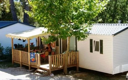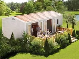 le mobil-home de 30m² tout équipé avec sa terrasse ombragée